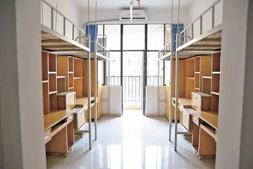 目前本科新生统一住四人间,全部是上床下桌结构。每人一张床(90cm宽,200cm长)、一套桌椅、一个衣柜、一个储物柜,空间够用,不会太挤。